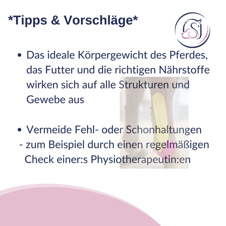- Das ideale Körpergewicht des Pferdes, das Futter und die richtigen Nährstoffe wirken sich auf alle Strukturen und Gewebe aus